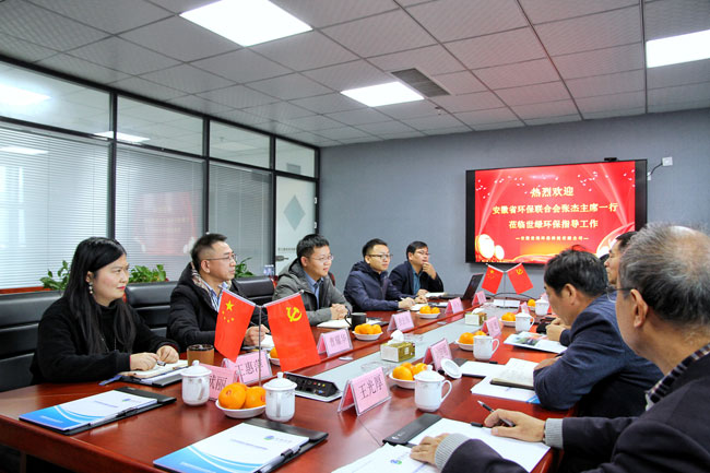 11月20日下午,安徽省環(huán)保聯(lián)合會主席張杰、常務(wù)副主席劉定明、副主席兼秘書長賈宏群等領(lǐng)導(dǎo)一行,蒞臨我公司進行考察交流,我公司董事長查宏偉、總經(jīng)理石臺等熱情接待并座談。