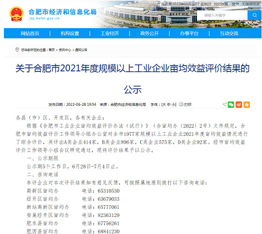 不以規(guī)模定標(biāo)準(zhǔn),而以“畝均論英雄”。近日,根據(jù)《合肥市工業(yè)企業(yè)畝均效益評(píng)價(jià)辦法(試行)》(合畝均辦〔2022〕2號(hào))文件規(guī)定,合肥市畝均效益評(píng)價(jià)工作領(lǐng)導(dǎo)小組辦公室對(duì)全市1977家規(guī)模以上工業(yè)企業(yè)2021年度畝均效益情況進(jìn)行了綜合評(píng)價(jià),共評(píng)出A類企業(yè)414家,B類企業(yè)896家,C類企業(yè)575家,D類企業(yè)92家。經(jīng)市畝均效益評(píng)價(jià)工作領(lǐng)導(dǎo)小組會(huì)議研究通過,將評(píng)價(jià)結(jié)果予以公示。安徽世綠環(huán)??萍加邢薰驹诖舜尉C合評(píng)價(jià)中,被評(píng)為A級(jí)。